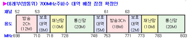 ´Ù¸¸ ±âÁ¸¿¡ ¹«¼±¸¶ÀÌÅ©¸¦ »ç¿ëÇÏ´ø ÀÌ¿ëÀÚ¸¦ º¸È£Çϱâ À§ÇØ 700MHz ´ë¿ªÀ» ƯÁ¤ »ç¾÷ÀÚ°¡ Ȱ¿ëÇÒ ¼ö ÀÖ°Ô µÇ´Â ½ÃÁ¡(2013. 10¿ù ¸» ÀÌÈÄ·Î ¿¹»óµÊ)±îÁö °èµµ±â°£À» µÎ°í ÀÖ½À´Ï´Ù.