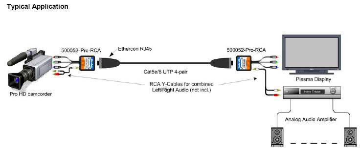 °³¿ä : UTP Cat5e/6 ÄÉÀ̺í·Î ÇϳªÀÇ component video(YPbPr or RGB)½ÅÈ£¿Í left/right analog audio ½ÅÈ£¸¦ Àü¼ÛÇÕ´Ï´Ù.